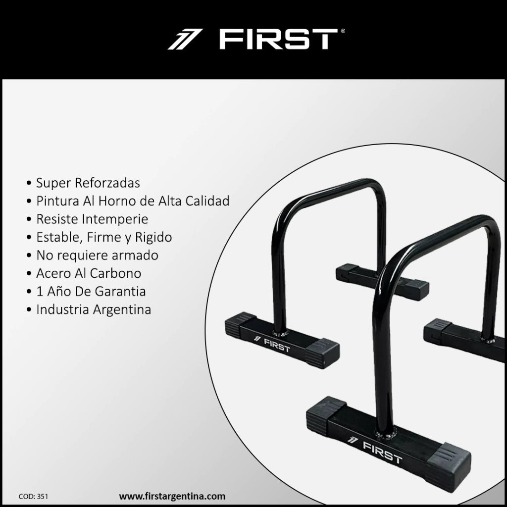 Las Barras Paralelas First de 30 cm son la opción ideal para quienes buscan un entrenamiento funcional, calisténico o de rehabilitación con máxima estabilidad y durabilidad. Su diseño compacto permite realizar ejercicios de empuje, planchas, fondos y trabajo de core en cualquier espacio. Fabricadas en acero al carbono de alta resistencia y con terminación profesional, garantizan una larga vida útil y un agarre seguro.